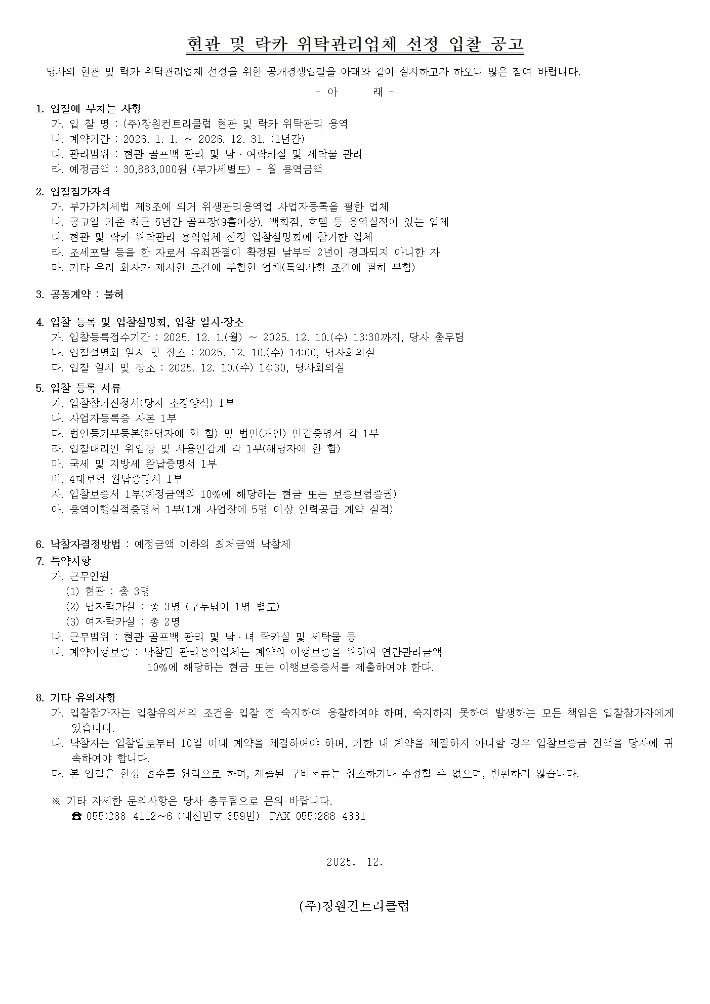 2026년 현관 및 락카 위탁관리업체 선정 입찰 공고