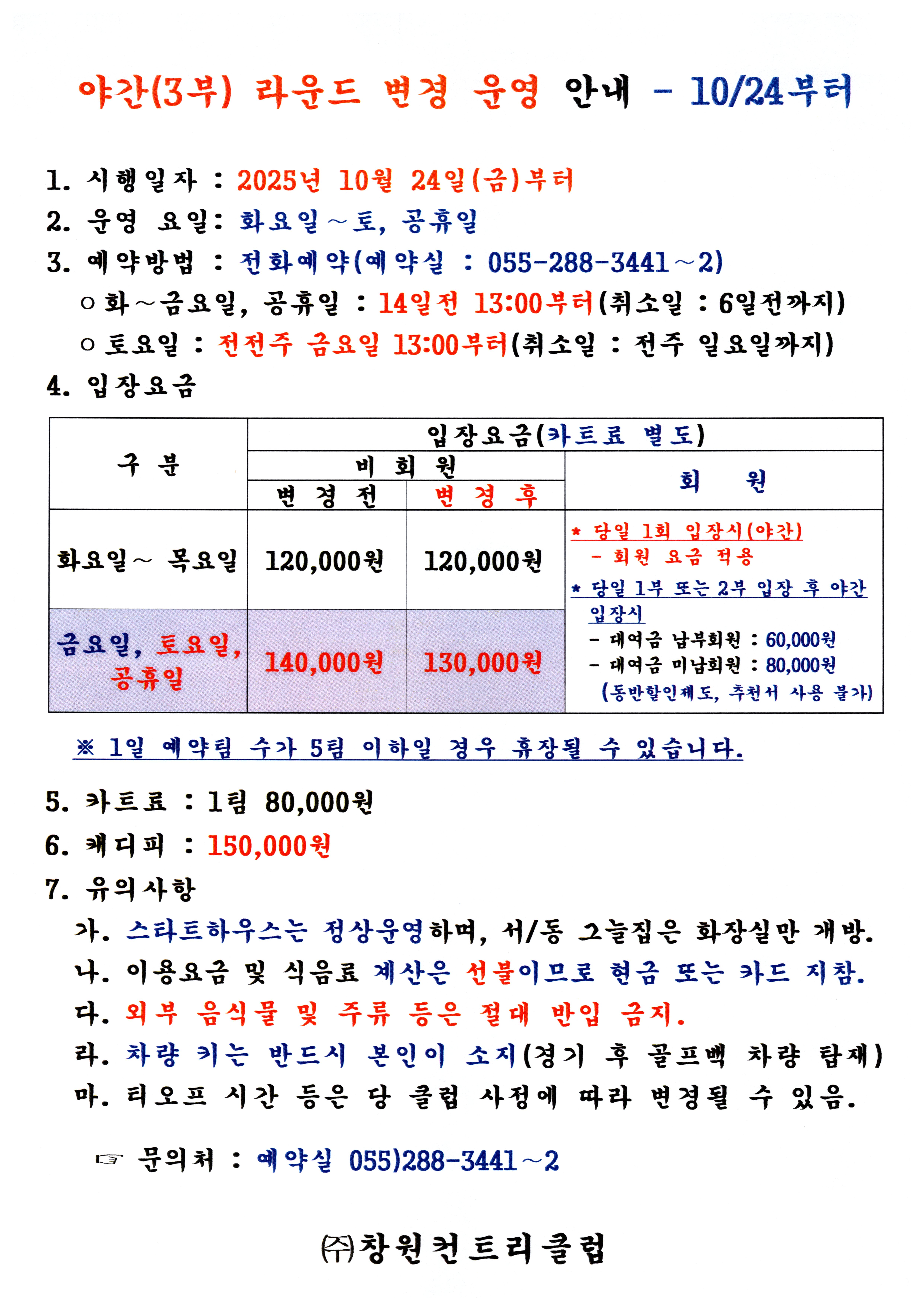 야간(3부) 라운드 변경 운영