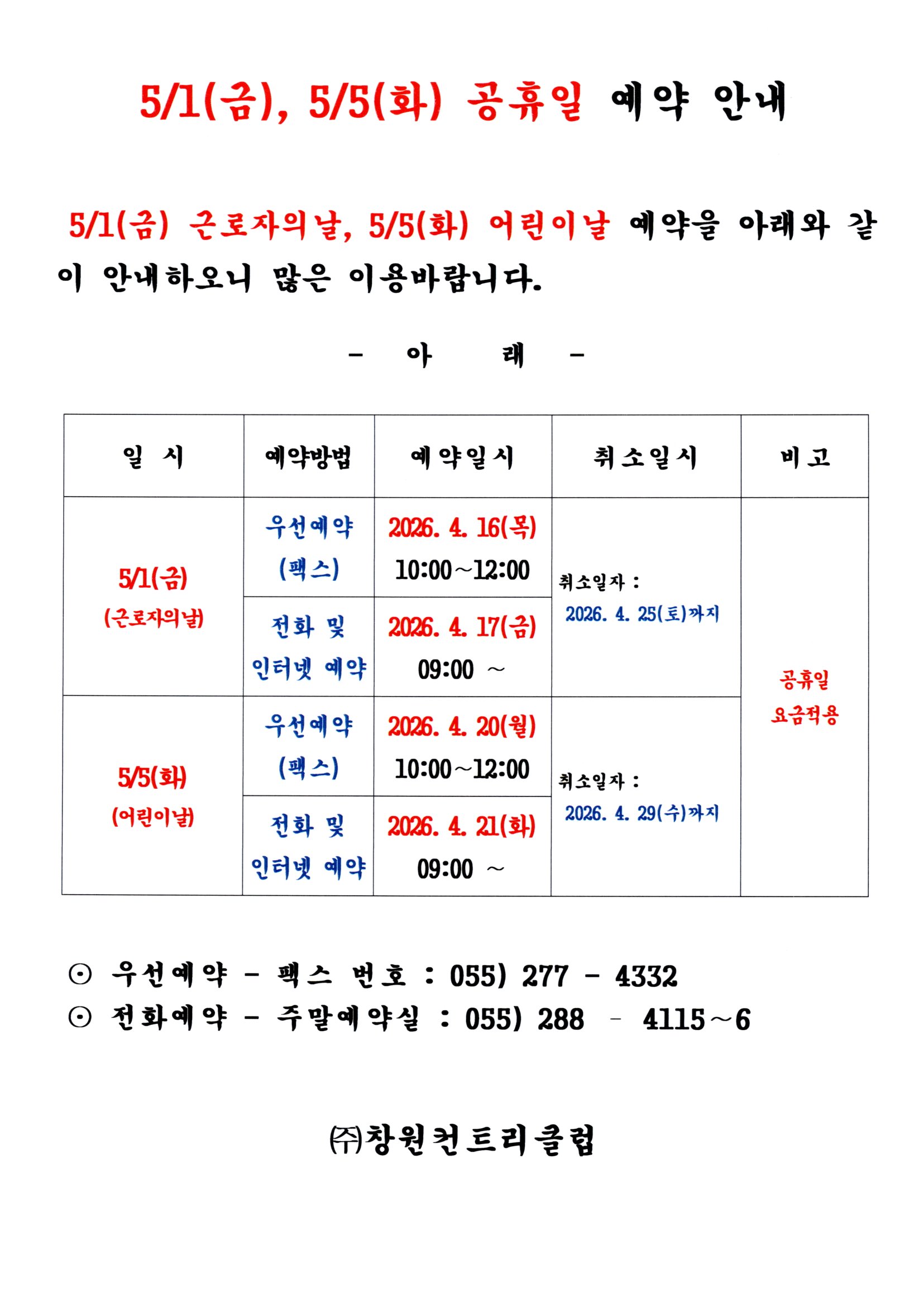 5/1(금), 5/5(화) 공휴일