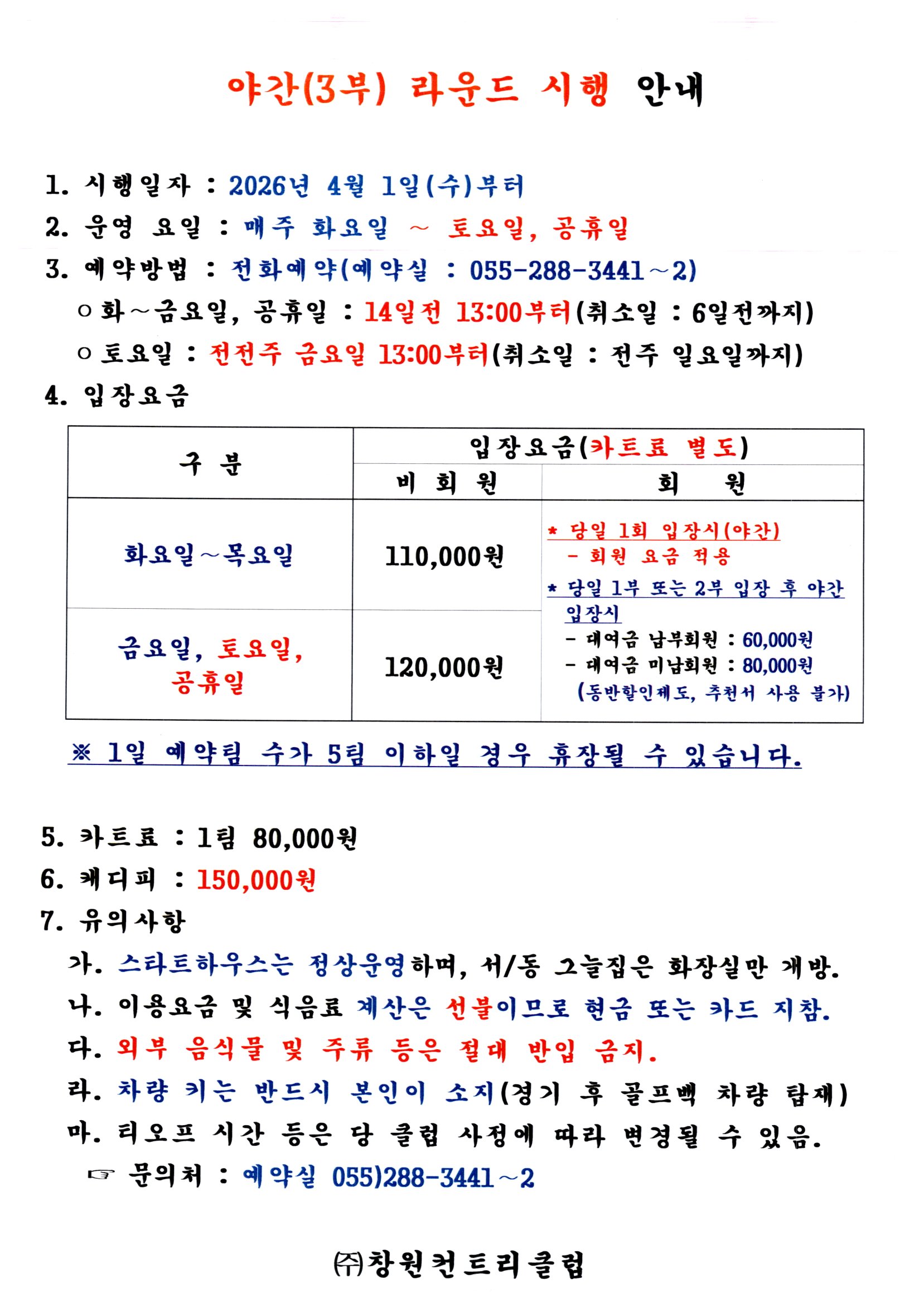 야간(3부) 라운드 시행