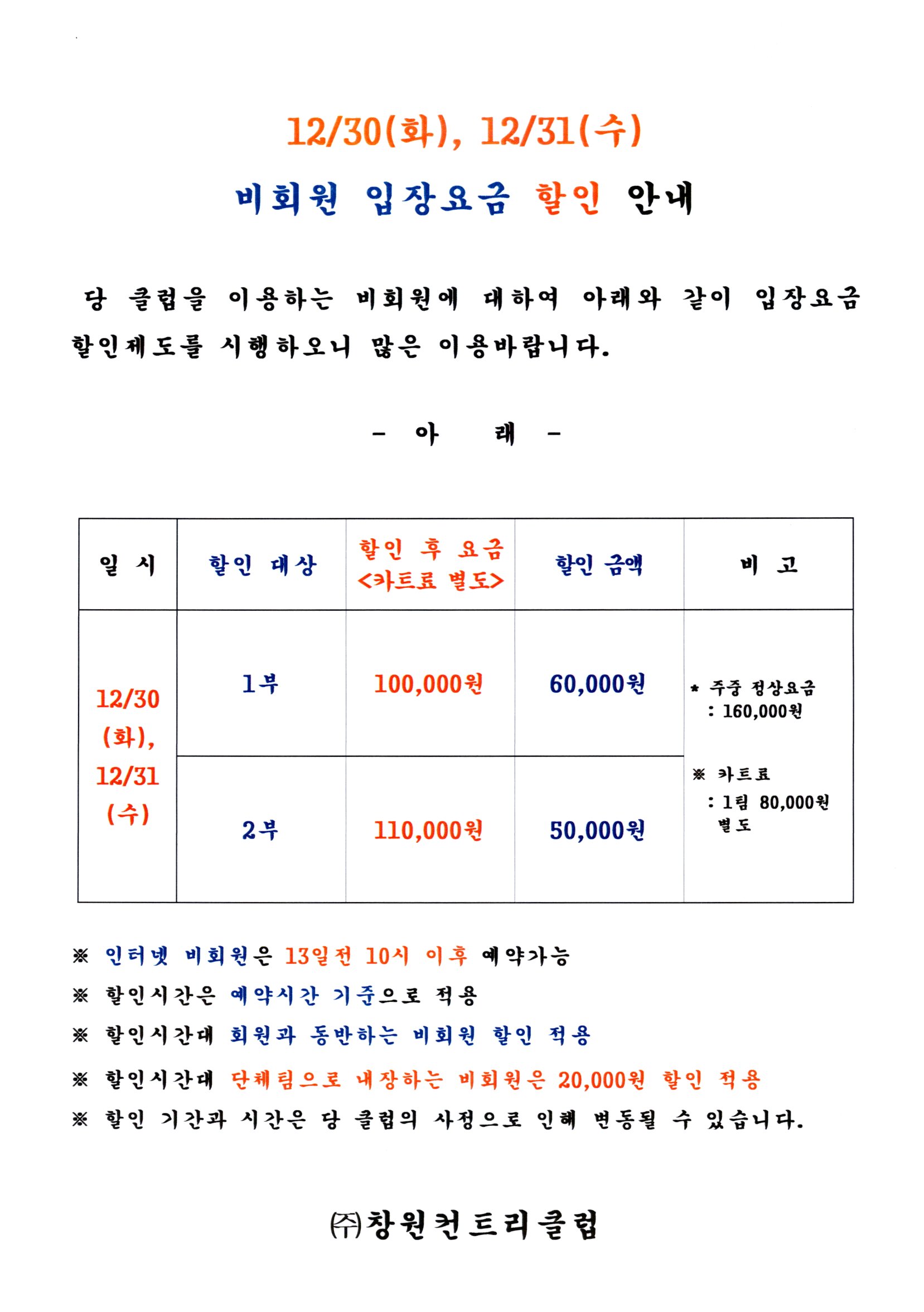 12/30(화), 12/31(수)